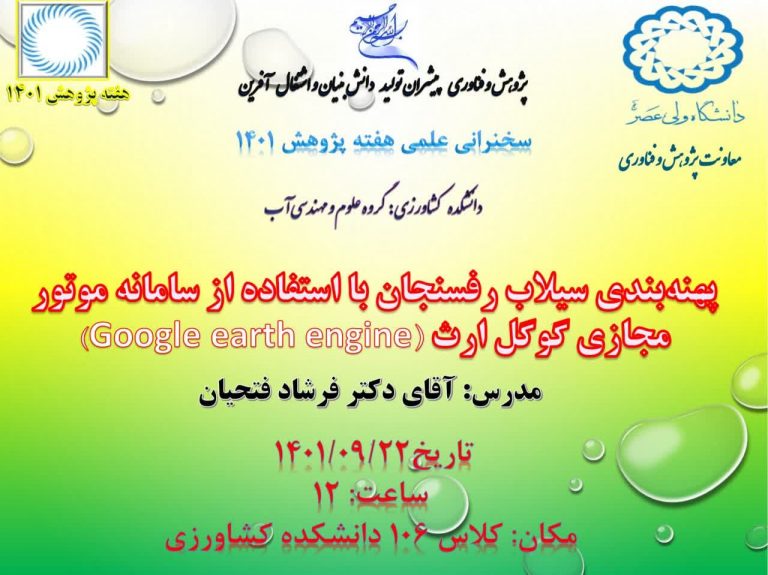 - پهنه بندی سیلاب رفسنجان با استفاده از سامانه موتور مجازی گوگل ارث