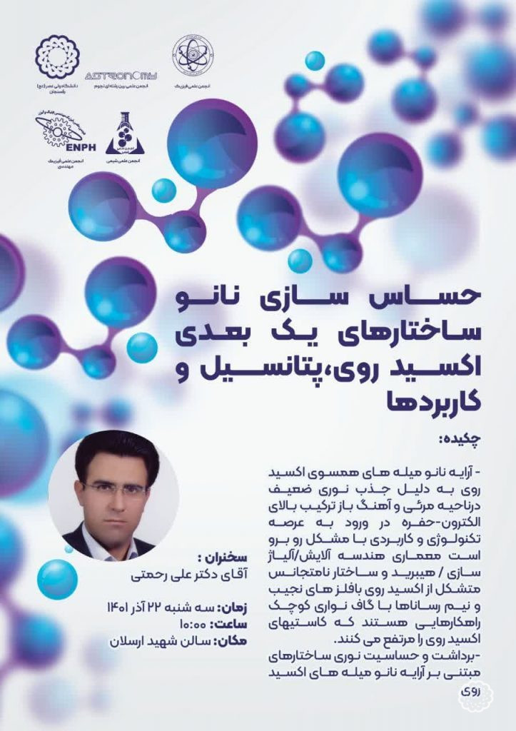 - سمینار حساس سازی نانو ساختارهای یک بعدی اکسید روی، پتانسیل و کاربردها