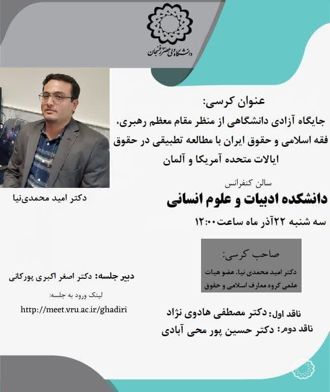 - جایگاه آزادی دانشگاهی از منظر مقام معظم رهبری، فقه اسلامی و حقوق ایران با مطالعه تطبیقی در حقوق ایالات متحده آمریکا و آلمان