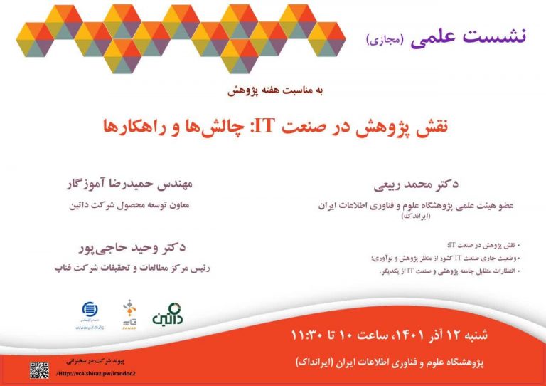- نشست علمی(مجازی) نقش پژوهش در صنعتIT: چالش ها و راهکارها