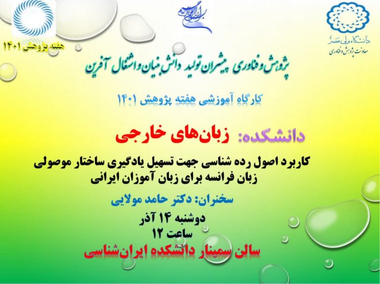 - کارگاه کاربرد اصول ردهشناسی جهت تسهیل یادگیری ساختار موصولی زبان فرانسه برای زبان آموزان ایرانی