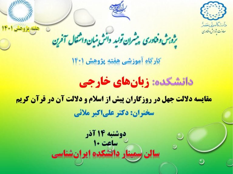 - کارگاه مقایسه دلالت جهل در روزگاران پیش از اسلام و دلالت آن در قرآن کریم