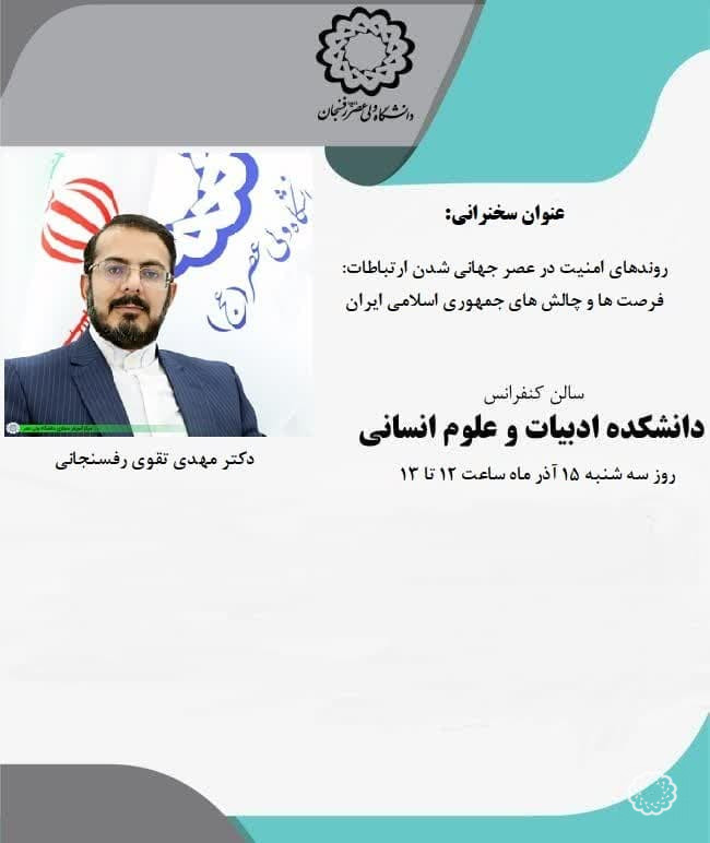 - سخنرانی:روندهای امنیت در عصر جهانی شدن ارتباطات: فرصتها و چالشهای جمهوری اسلامی ایران