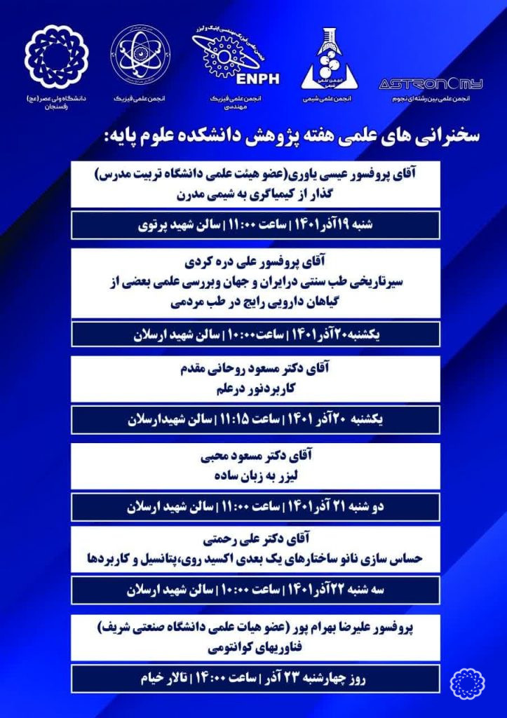 - برنامه سخنرانیهای هفته پژوهش در دانشکده علوم پایه